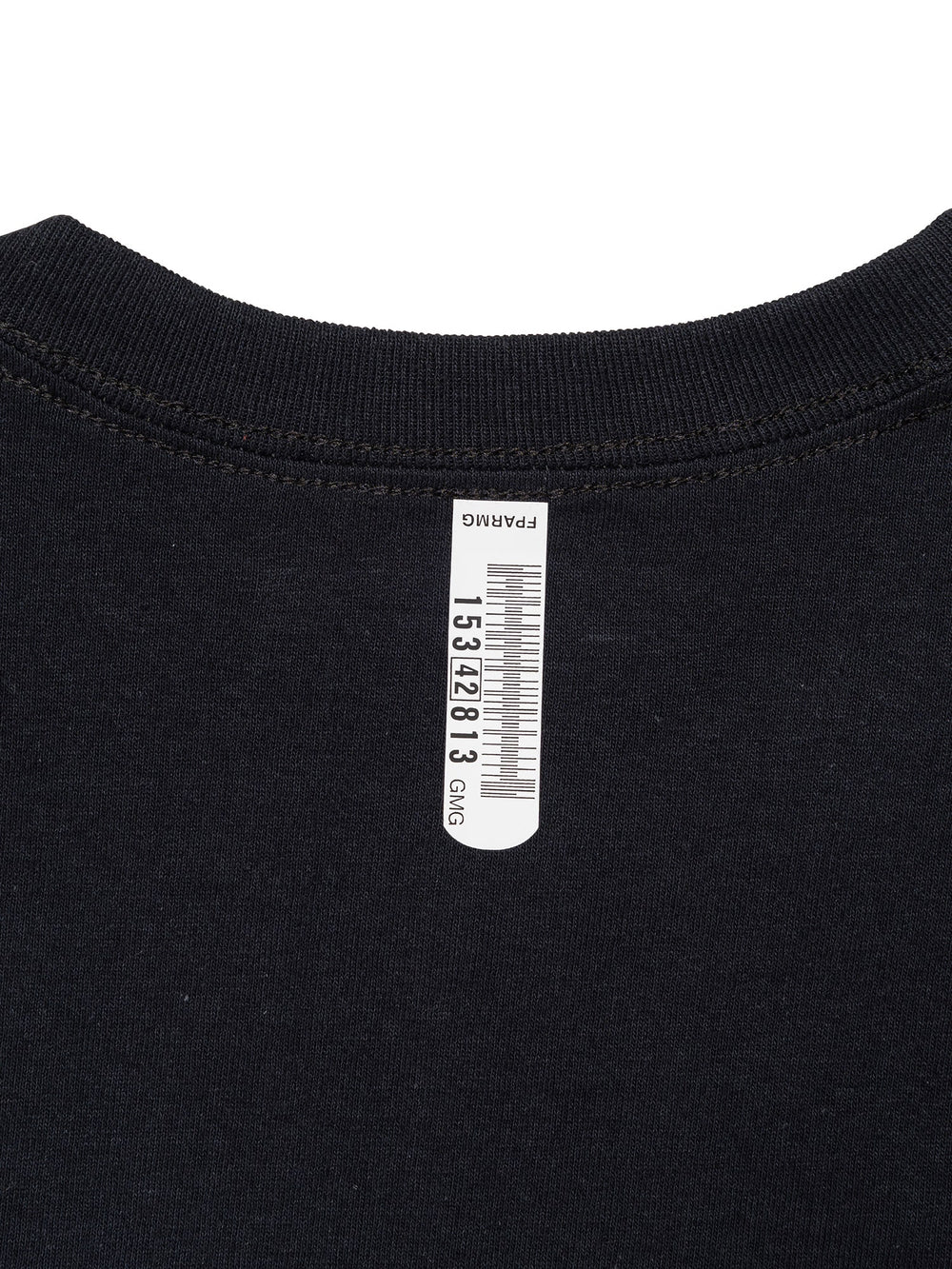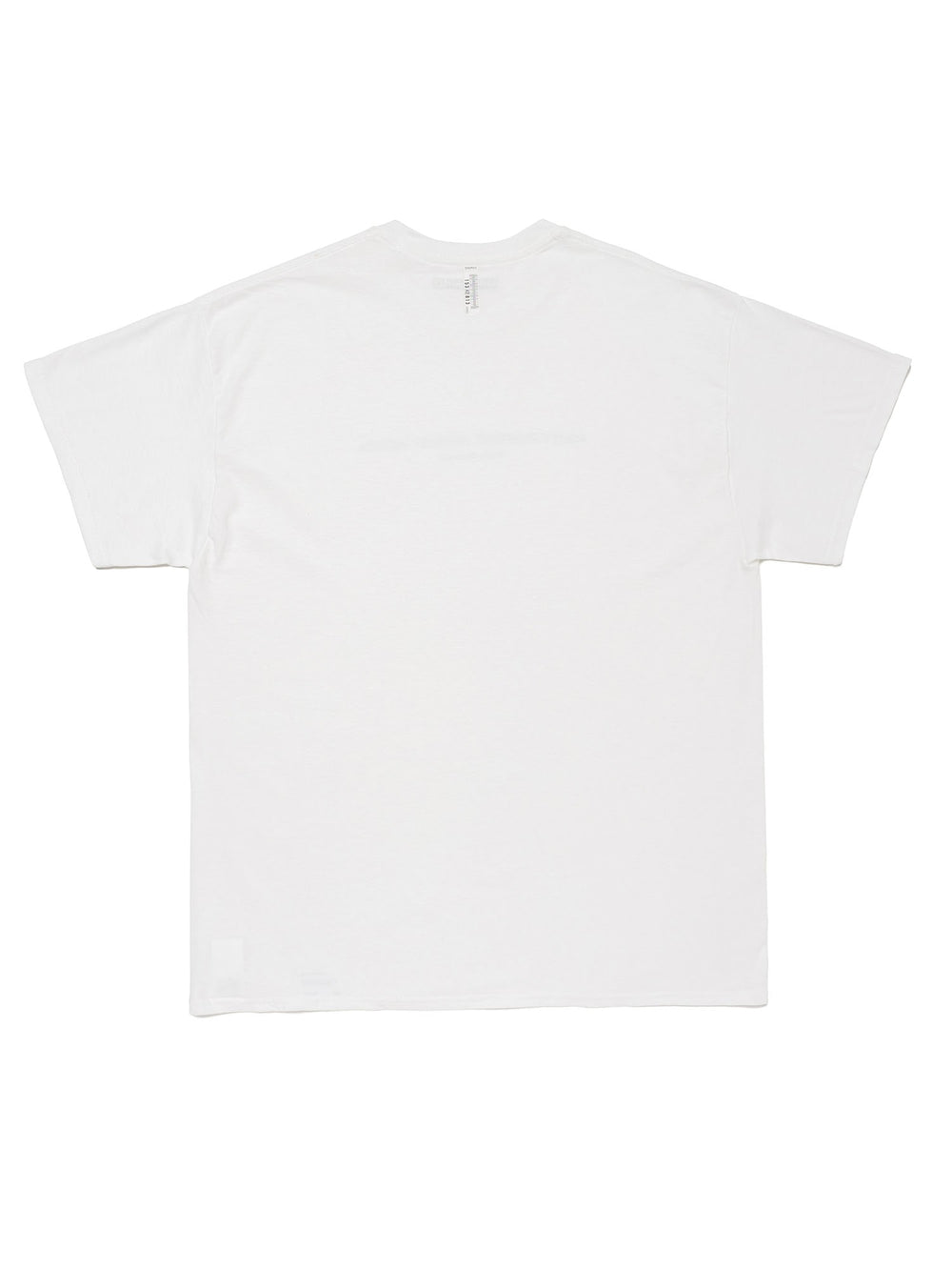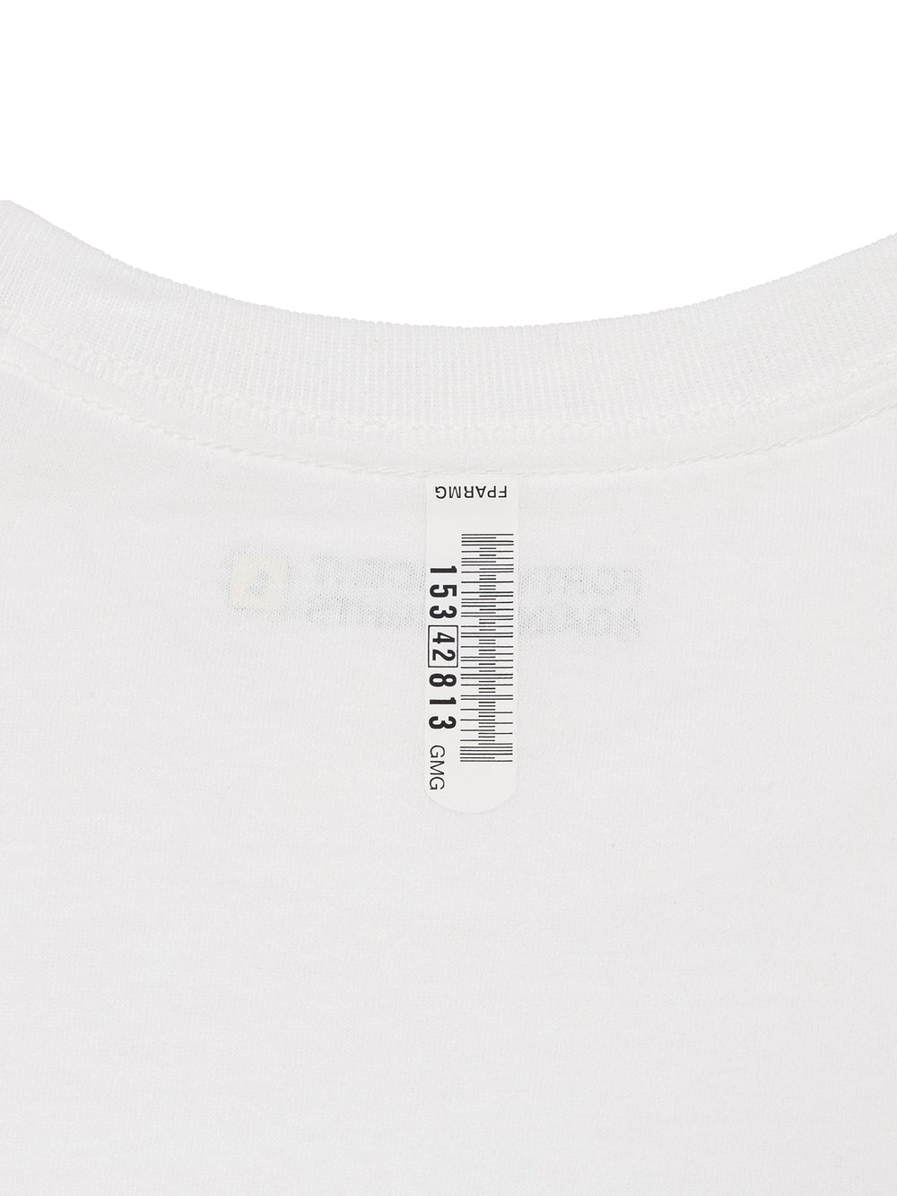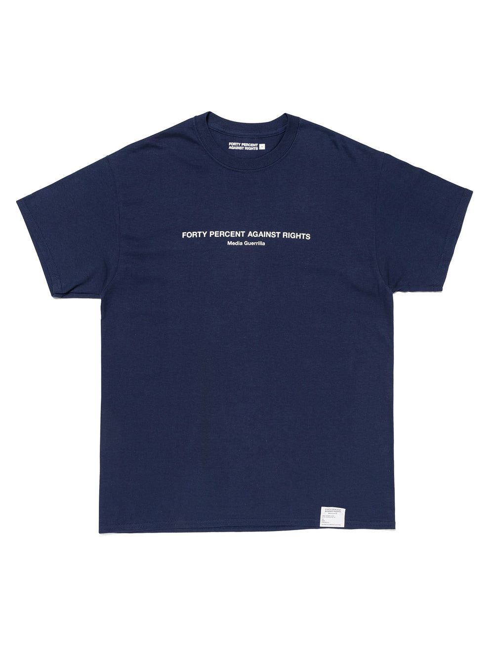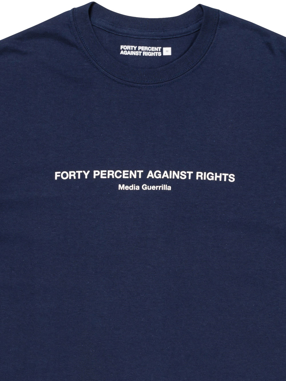 FORTY PERCENT AGAINST RIGHTS / Media Guerrillaのロゴを前面にプリントしたコットン天竺のショートスリーブTシャツ。後ろ襟の直下にはランドリーチケットを模したネームをプリント。